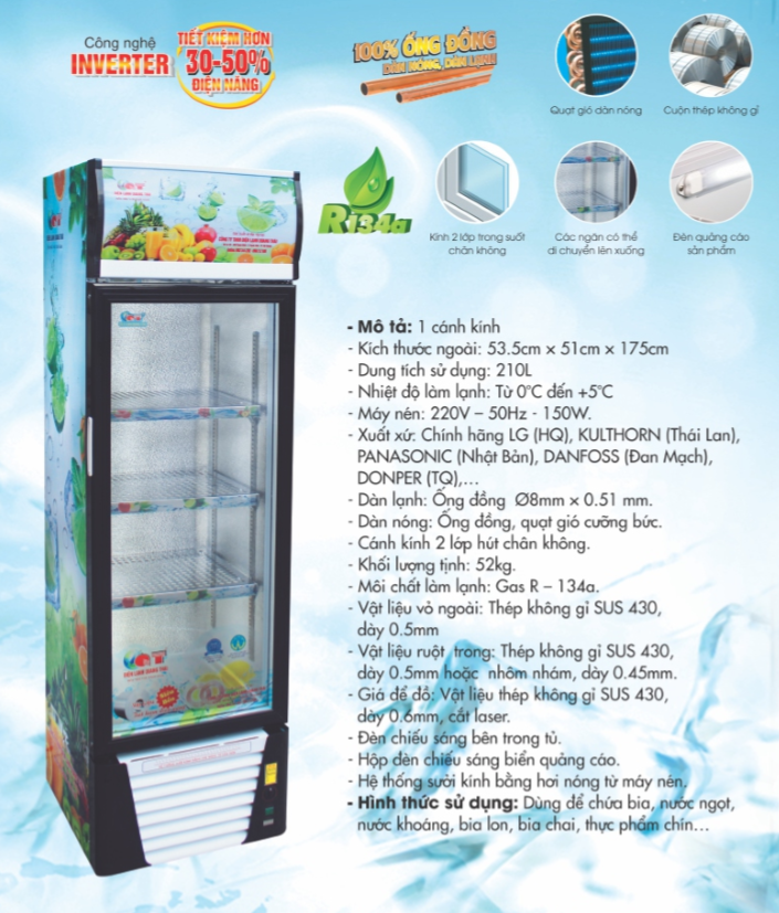 Tủ mát cánh kính: 1C - 210L